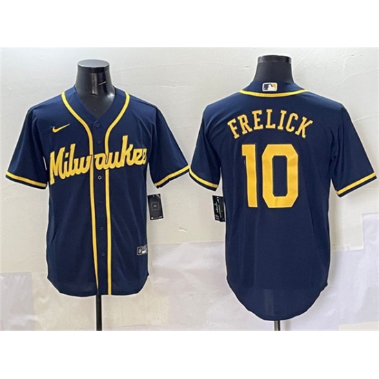 Men's Milwaukee Brewers #10 Sal Frelick Navy Cool Base Stitched Jersey
