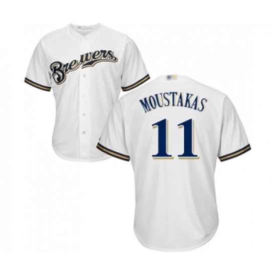 Men's Milwaukee Brewers #11 Mike Moustakas Replica White Alternate Cool Base Baseball Jersey