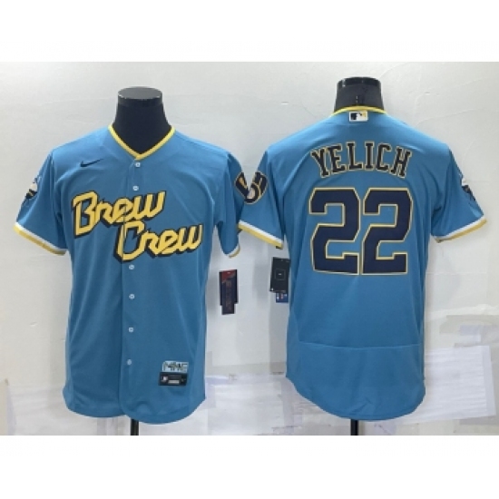 Men's Milwaukee Brewers #22 Christian Yelich Blue 2022 City Connect Flex Base Stitched Jersey