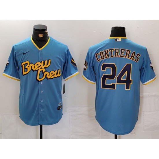 >Men's Milwaukee Brewers #24 William Contreras Blue 2022 City Connect Cool Base Stitched Jersey