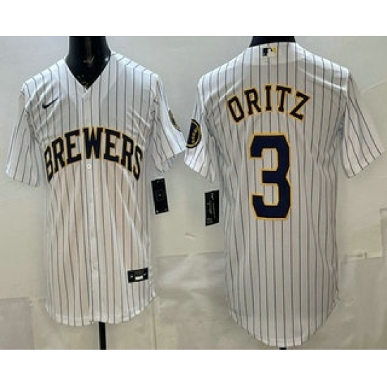 Men's Milwaukee Brewers #3 Joey Ortiz White Cool Base Jersey