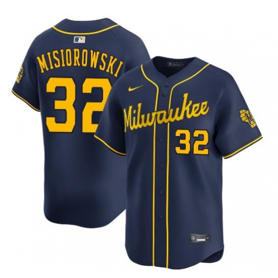 >Men's Milwaukee Brewers #32 Jacob Misiorowski Navy Alternate Limited Stitched Baseball Jersey