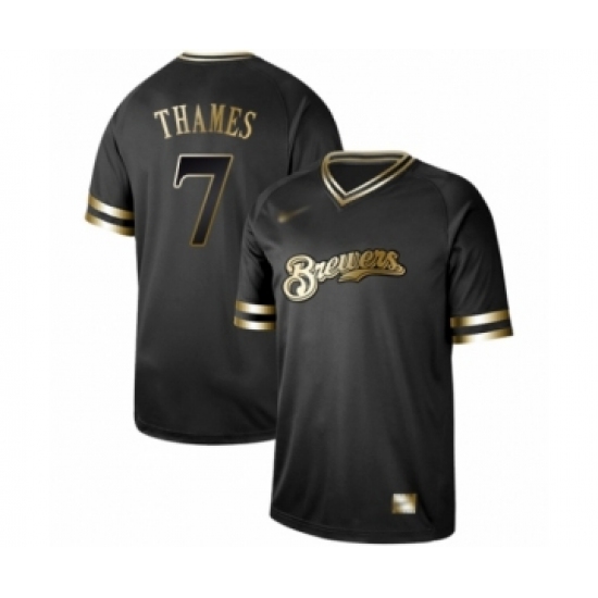 >Men's Milwaukee Brewers #7 Eric Thames Authentic Black Gold Fashion Baseball Jersey