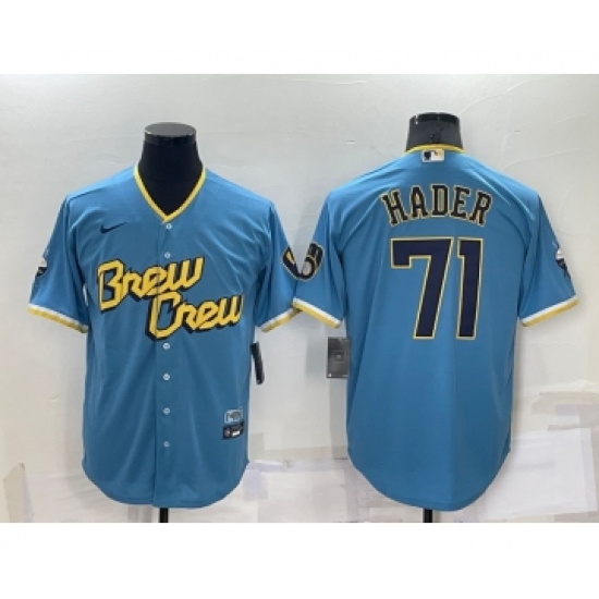 Men's Milwaukee Brewers #71 Josh Hader Blue 2022 City Connect Cool Base Stitched Jersey