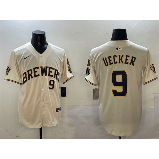 Men's Milwaukee Brewers #9 Bob Uecker Cream With Home Limited Stitched Baseball Jersey