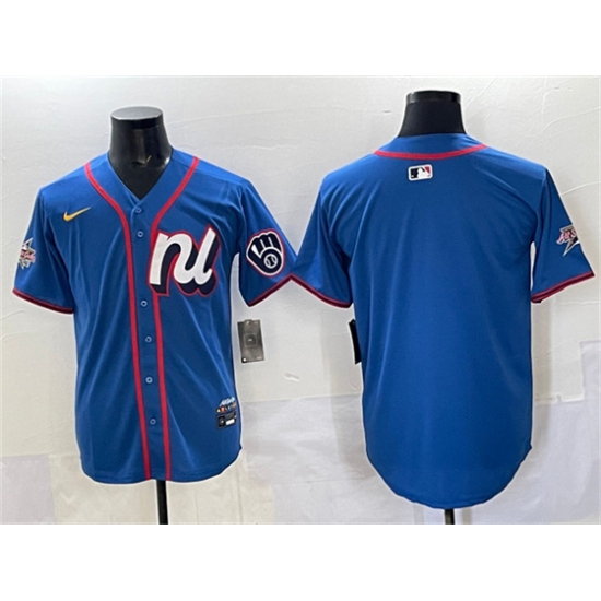 Men's Milwaukee Brewers Team Big Logo Blue 2025 All-Star Edition Limited Stitched Jersey