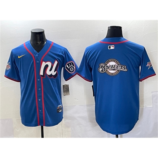 Men's Milwaukee Brewers Team Big Logo Blue 2025 All-Star Edition Limited Stitched Jersey