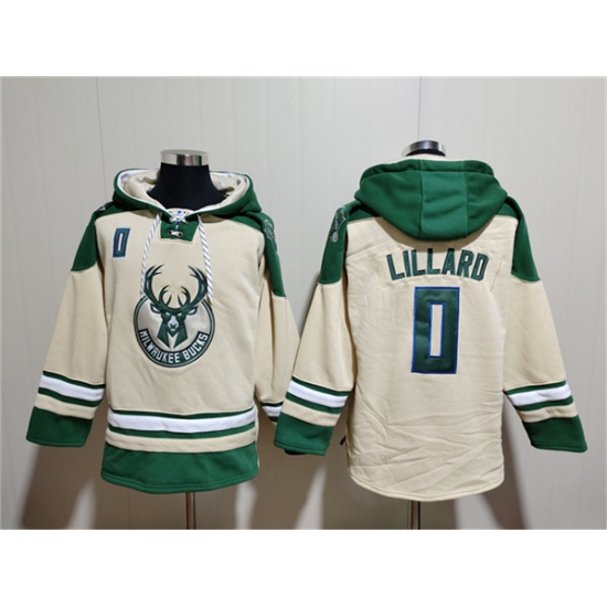 Men's Milwaukee Bucks #0 Damian Lillard Cream Lace-Up Pullover Hoodie