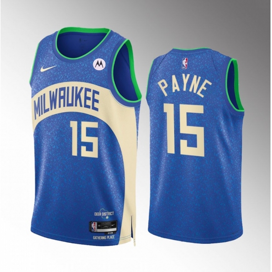 Men's Milwaukee Bucks #15 Cameron Payne Blue 2023-24 City Edition Stitched Basketball Jersey