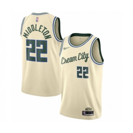 Men's Milwaukee Bucks #22 Khris Middleton Swingman Cream Basketball Jersey - 2019 20 City Edition