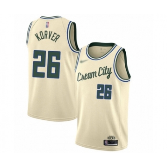 >Men's Milwaukee Bucks #26 Kyle Korver Swingman Cream Basketball Jersey - 2019 20 City Edition