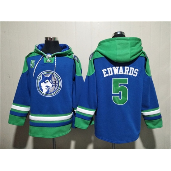 Men's Minnesota Timberwolves #5 Anthony Edwards Royal Lace-Up Pullover Hoodie
