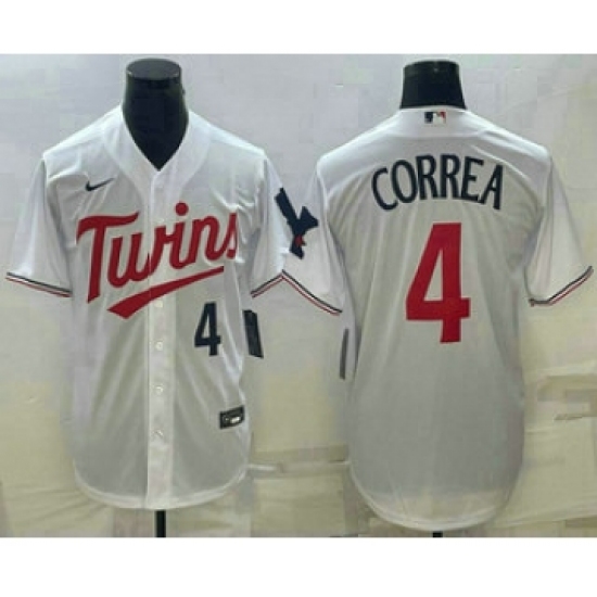 Men's Nike Minnesota Twins #4 Carlos Correa White Home Stitched Baseball Jersey