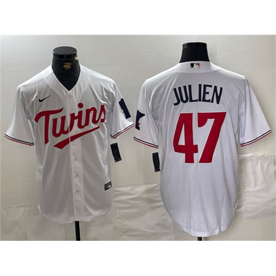 >Men's Minnesota Twins #47 Edouard Julien White Cool Base Stitched Jerseys