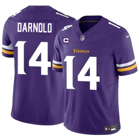>Men's Minnesota Vikings #14 Sam Darnold Purple 2024 F.U.S.E. With 4-Star C Vapor Untouchable Limited Stitched Jersey