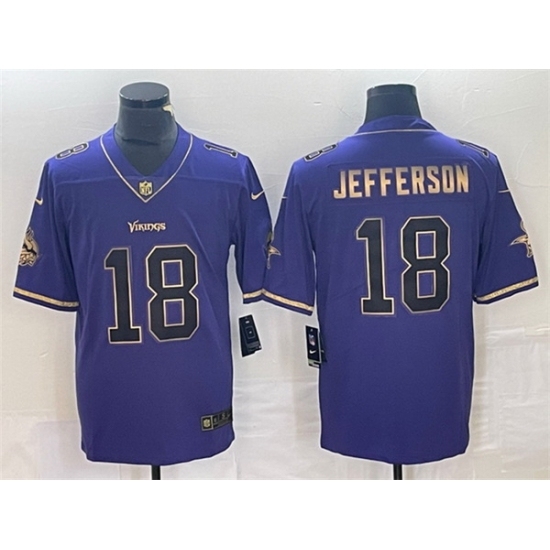 Men's Minnesota Vikings #18 Justin Jefferson Purple Gold Stitched Jersey