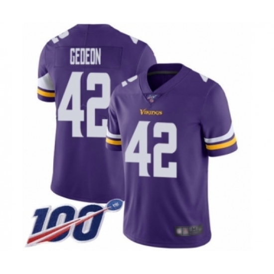 >Men's Minnesota Vikings #42 Ben Gedeon Purple Team Color Vapor Untouchable Limited Player 100th Season Football Jersey