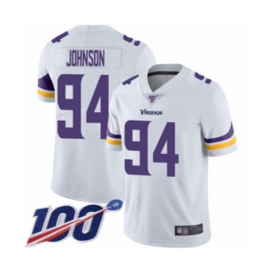 Men's Minnesota Vikings #94 Jaleel Johnson White Vapor Untouchable Limited Player 100th Season Football Jersey
