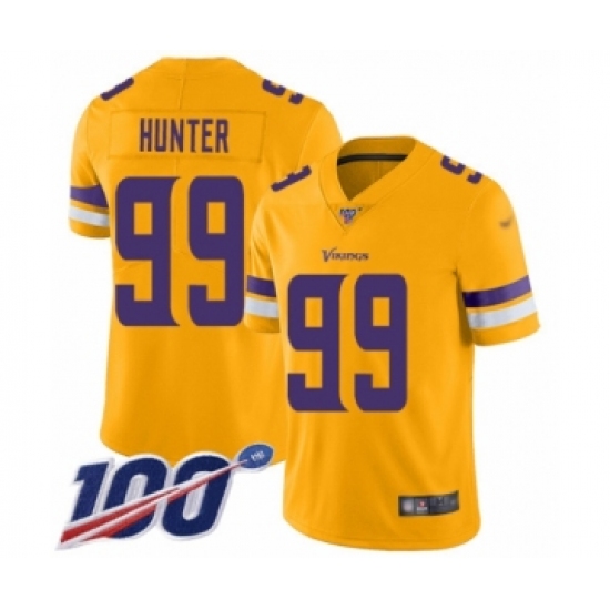 >Men's Minnesota Vikings #99 Danielle Hunter Limited Gold Inverted Legend 100th Season Football Jersey