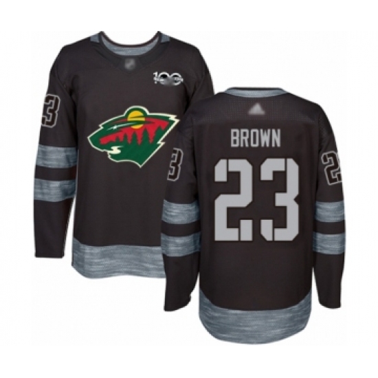 Men's Minnesota Wild #23 J.T. Brown Authentic Black 1917-2017 100th Anniversary Hockey Jersey