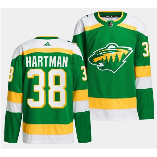 >Men's Minnesota Wild #38 Ryan Hartman Green 2023-24 Stitched Jersey