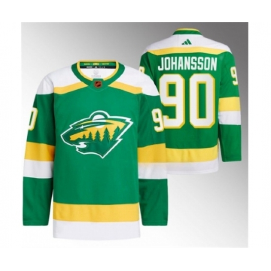 >Men's Minnesota Wild #90 Marcus Johansson Green 2022-23 Reverse Retro Stitched Jersey
