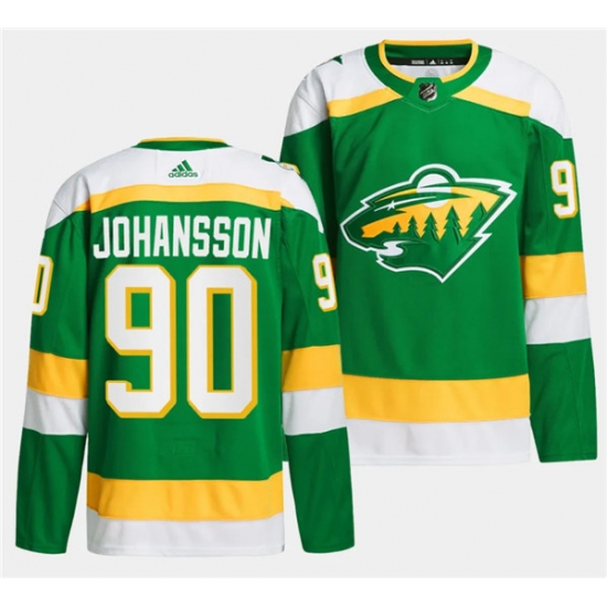 >Men's Minnesota Wild #90 Marcus Johansson Green 2023-24 Stitched Jersey