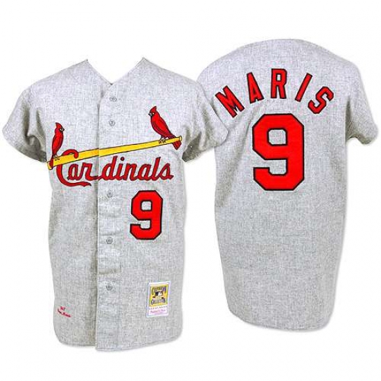 Home>MLB>St. Louis Cardinals>Roger Maris>Men's Mitchell and Ness 1967 St. Louis Cardinals #9 Roger Maris Authentic Grey Throwback MLB Jersey