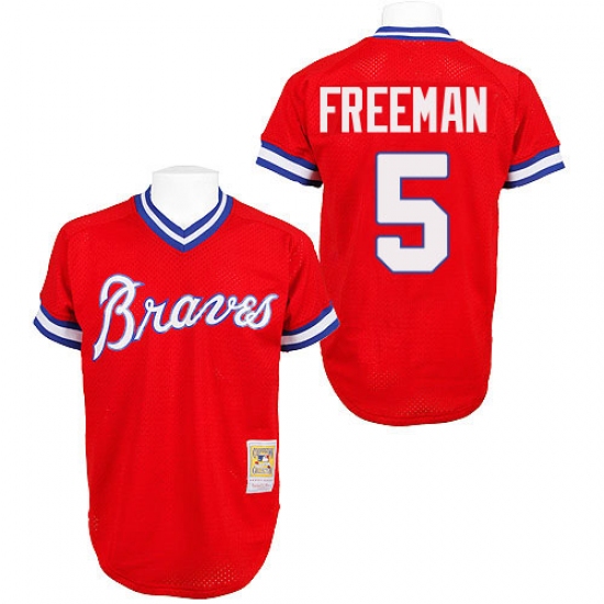 Home>MLB>Atlanta Braves>Freddie Freeman>Men's Mitchell and Ness Atlanta Braves #5 Freddie Freeman Authentic Red Throwback MLB Jersey