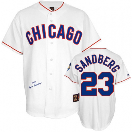 Home>MLB>Chicago Cubs>Ryne Sandberg>Men's Mitchell and Ness Chicago Cubs #23 Ryne Sandberg Replica White 1988 Throwback MLB Jersey