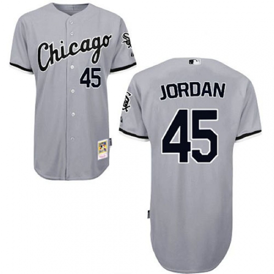 Men's Mitchell and Ness Chicago White Sox #45 Michael Jordan Authentic Grey Throwback MLB Jersey