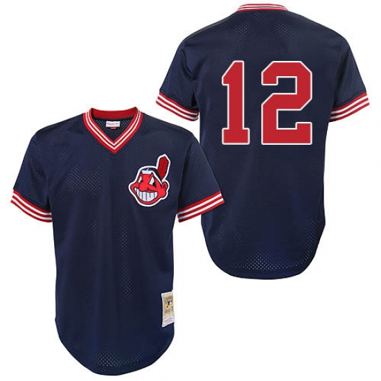 Home>MLB>Cleveland Indians>Francisco Lindor>Men's Mitchell and Ness Cleveland Indians #12 Francisco Lindor Authentic Blue Throwback MLB Jersey