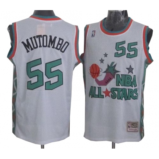 Home>NBA>Denver Nuggets>Dikembe Mutombo>Men's Mitchell and Ness Denver Nuggets #55 Dikembe Mutombo Swingman White 1996 All Star Throwback NBA Jersey