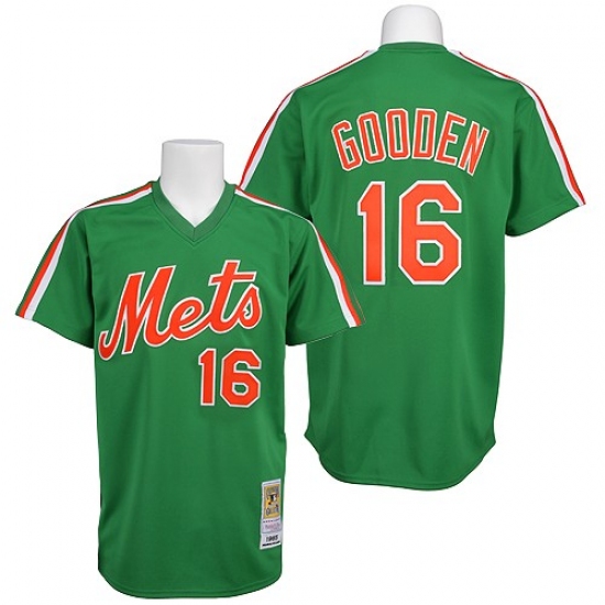 Men's Mitchell and Ness New York Mets #16 Dwight Gooden Replica Green Throwback MLB Jersey