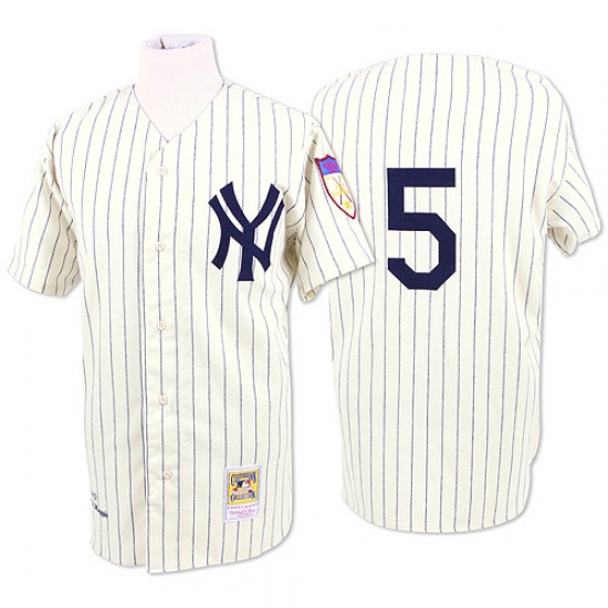 Men's Mitchell and Ness New York Yankees #5 Joe DiMaggio Authentic White Throwback MLB Jersey