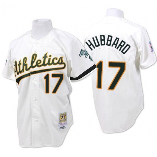 Home>MLB>Oakland Athletics>Glenn Hubbard>Men's Mitchell and Ness Oakland Athletics #17 Glenn Hubbard Authentic White Throwback MLB Jersey