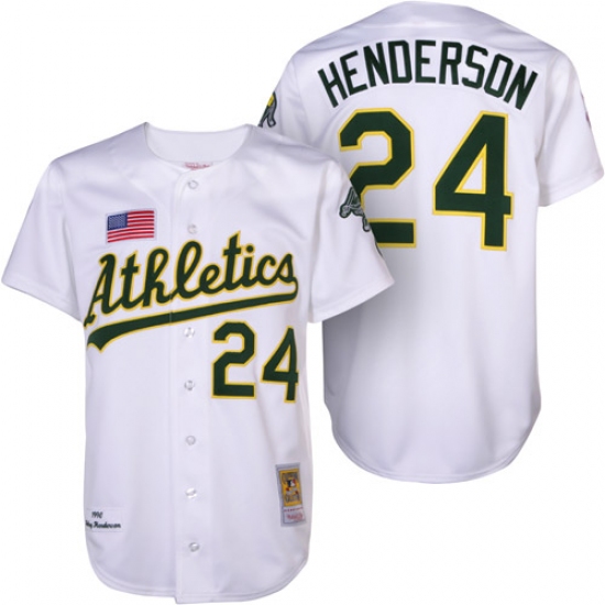 Home>MLB>Oakland Athletics>Rickey Henderson>Men's Mitchell and Ness Oakland Athletics #24 Rickey Henderson Replica White 1990 Throwback MLB Jersey