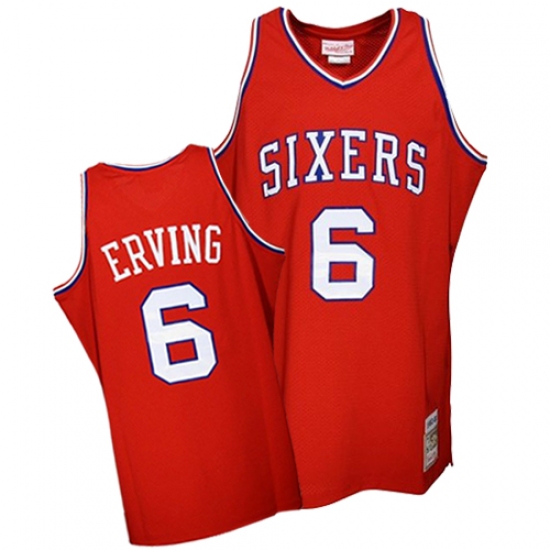 Men's Mitchell and Ness Philadelphia 76ers #6 Julius Erving Authentic Red Throwback NBA Jersey