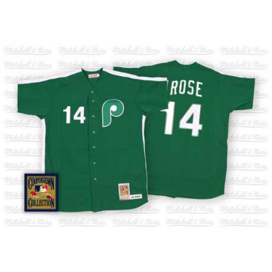 Men's Mitchell and Ness Philadelphia Phillies #14 Pete Rose Authentic Green Throwback MLB Jersey