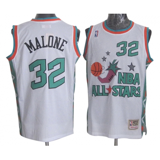 Home>NBA>Utah Jazz>Karl Malone>Men's Mitchell and Ness Utah Jazz #32 Karl Malone Authentic White 1996 All Star Throwback NBA Jersey