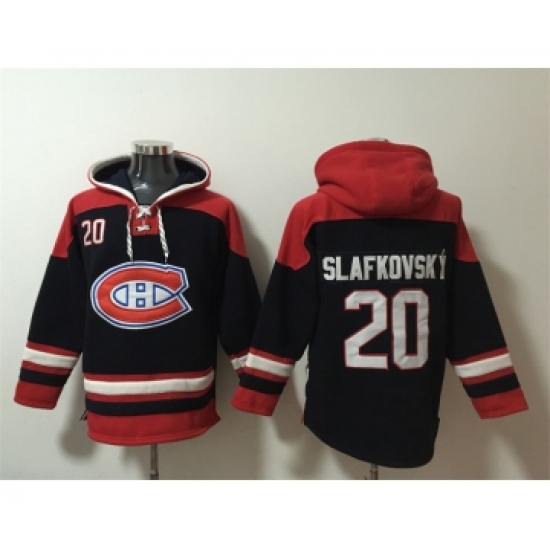 Men's Montreal Canadiens #20 Juraj Slafkovsky Navy Red Lace-Up Pullover Hoodie