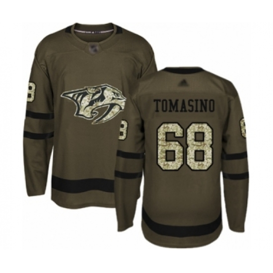 >Men's Nashville Predators #68 Philip Tomasino Authentic Green Salute to Service Hockey Jersey