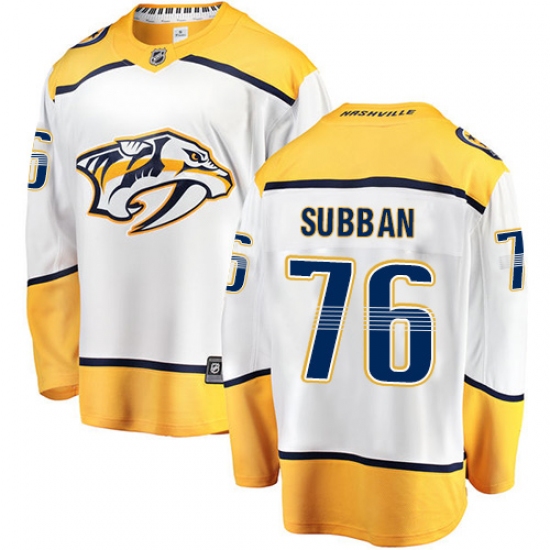 Home>NHL>Nashville Predators>P.K Subban>Men's Nashville Predators #76 P.K Subban Fanatics Branded White Away Breakaway NHL Jersey