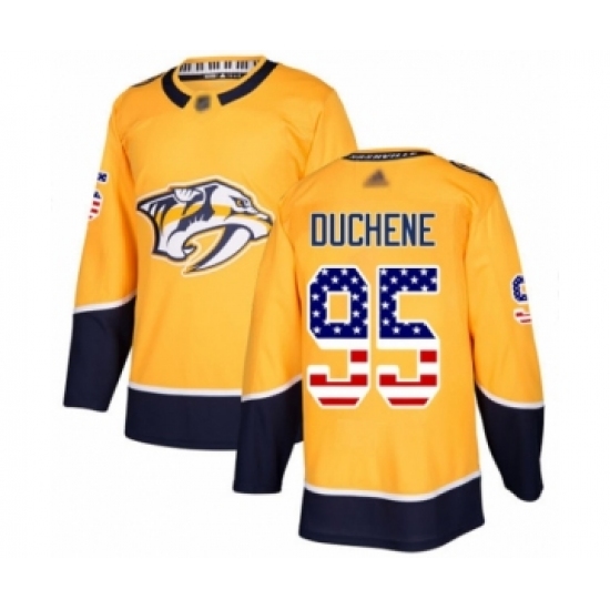Men's Nashville Predators #95 Matt Duchene Authentic Gold USA Flag Fashion Hockey Jersey