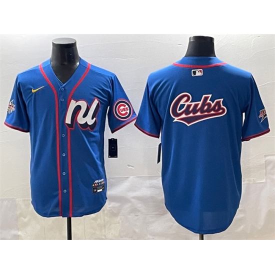 >Men's National League Chicago Cubs Team Big Logo Blue 2025 All-Star Edition Limited Stitched Baseball Jersey