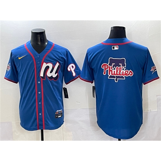 >Men's National League Philadelphia Phillies Team Big Logo Blue 2025 All-Star Edition Limited Stitched Baseball Jersey