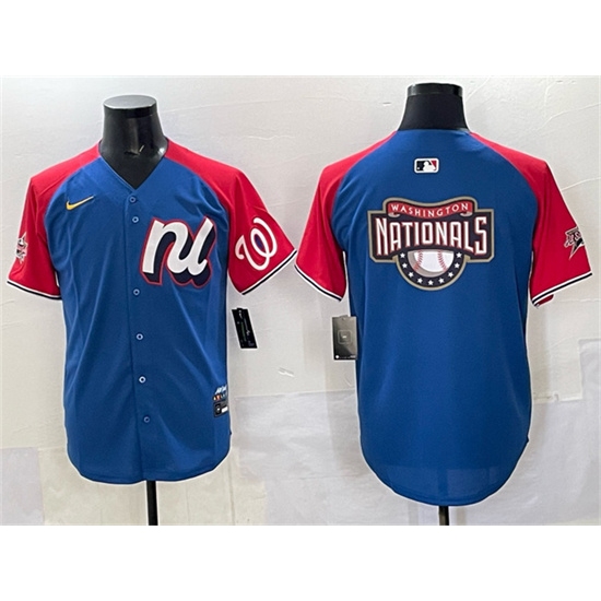 >Men's National League Washington Nationals Team Big Logo Blue Red Alternate 2025 All-Star Edition Limited Stitched Baseball Jersey