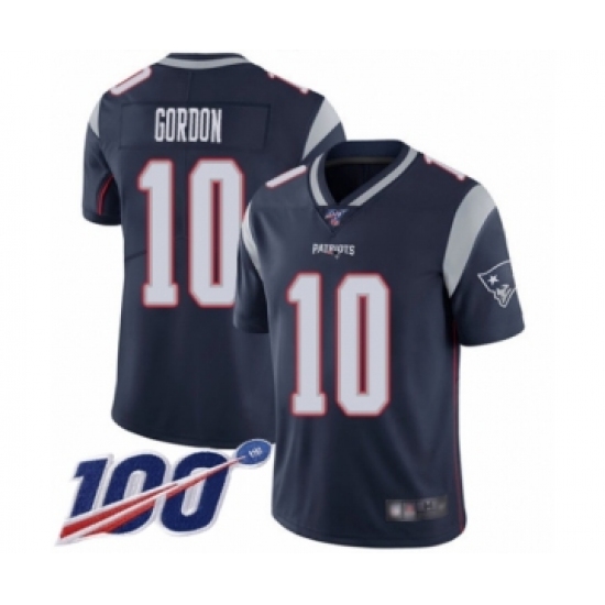 >Men's New England Patriots #10 Josh Gordon Navy Blue Team Color Vapor Untouchable Limited Player 100th Season Football Jersey