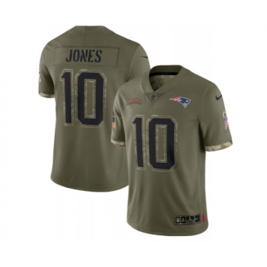 Men's New England Patriots #10 Mac Jones 2022 Olive Salute To Service Limited Stitched Jersey
