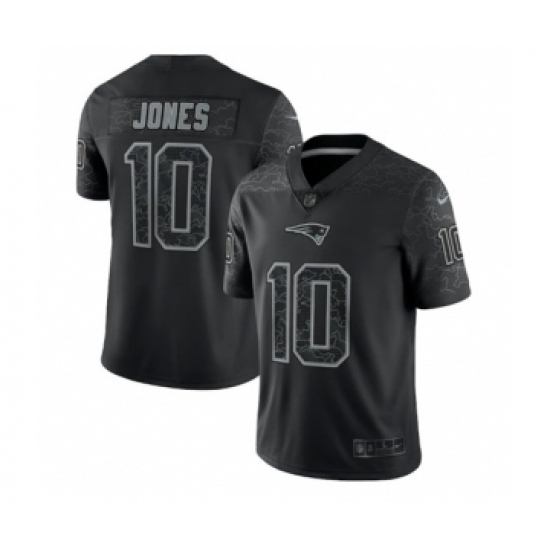 >Men's New England Patriots #10 Mac Jones Black Reflective Limited Stitched Football Jersey